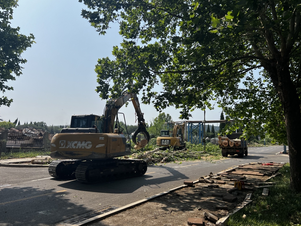 炎炎夏日,我们不畏酷暑,加班加点只为保证工期。施工过程中,我们对那些生态价值、观赏价值高的树木,优先进行了移栽,同时为提高移栽成活率,进行了断根、修枝、注射营养液等多种方式最大程度的保证树木的存活。同时我们也对后期的养护做了充足的方案,包括定期浇水、修剪以及病虫害的防治。针对确实无法移栽的树木,我们也秉持着严谨的态度,使用专业且合适的吊运设备和伐除工具进行伐除。